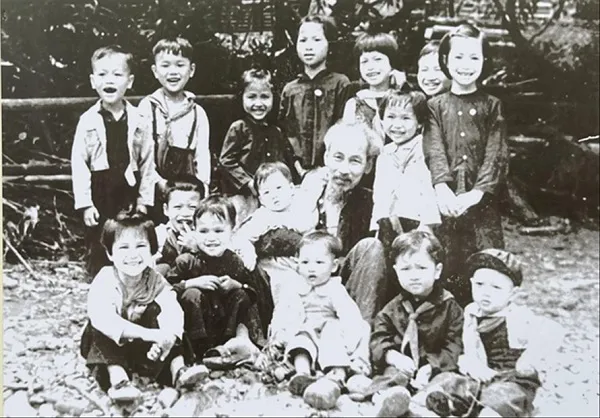 | President Ho Chi Minh played with children in Viet Bac War Zone in 1950. |