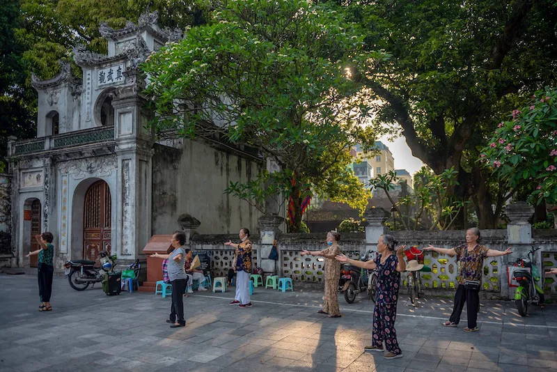 Some old Hanoians doing excercise in Ho Guom area in the morning. |