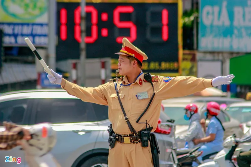 Working in the hottest time of the day, first lieutenant Nguyen Thanh Binh at traffic police squad No. 3, said: “The hotter the weather is, the more people rush driving, the more likely accidents would occur, so we have to work harder to ensure the safety of people.” |
