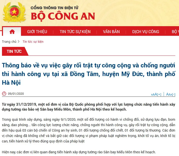 Major General To An Xo, head of the MPS’s Office, was quoted by VnExpress as saying that the incident in Dong Tam is “under control” and authorities maintain their on-site presence to “stabilize the situation.” He did not elaborate on the number of people under arrest.