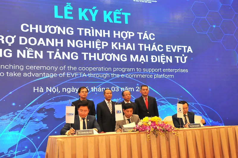 This is a cooperation program to support businesses exploiting EVFTA through an e-commerce platform jointly launched by the Vietnam Institute of Digital Economy and Management Science (VIDEM) and the Vietnam e-Commerce and Digital Economy Agency (IDEA) under the Ministry of Industry and Trade and Kim Nam Group.
