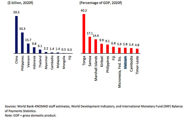 In the East Asian and Pacific region, in 2020, Vietnam is set to rank third after China and the Philippines (US$33.3 billion) – the world’s fourth largest recipient.