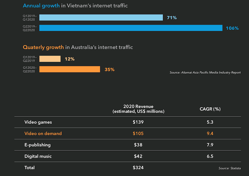 | Sources: Akamai Asia Pacific Media Industry Report, Statista. Screen shot: Nhat Minh |