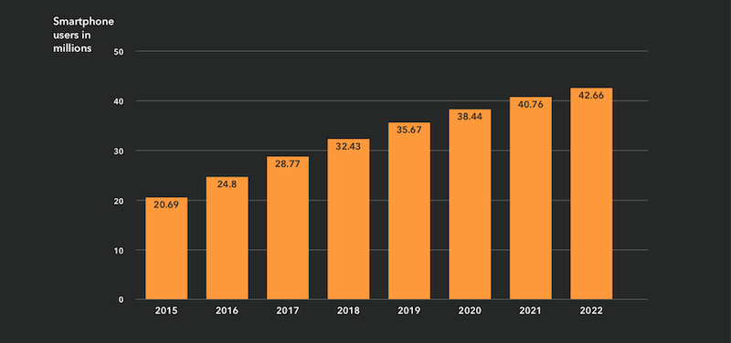 | The number of smartphone users in Vietnam. Source: Statista 2020 |