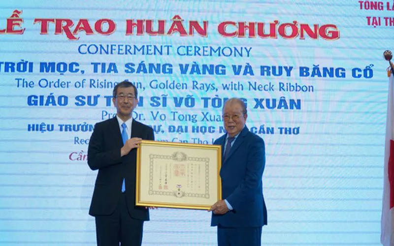Speaking at the ceremony held in the Mekong Delta city of Can Tho yesterday, Japanese Consul General Watanabe Nobuhiro said since 1875, the order has been awarded to foreigners who make outstanding contributions to Japanese cultural development, social welfare, and environmental protection.