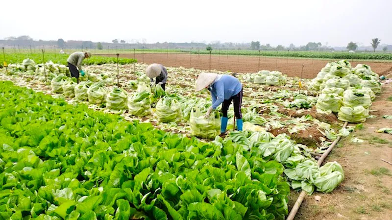 | Local farmers are harvesting vegetable in Hanoi. HNT Photo: Trong Tung |