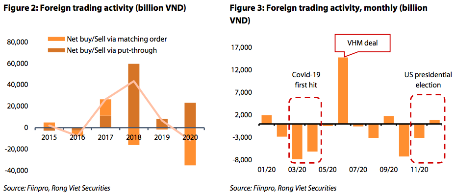 In 2020, foreign investors remained net selling through matching orders but they net bought well via put-through transactions, indicating that foreign investors are starting to be more selective in their investment on stock market.