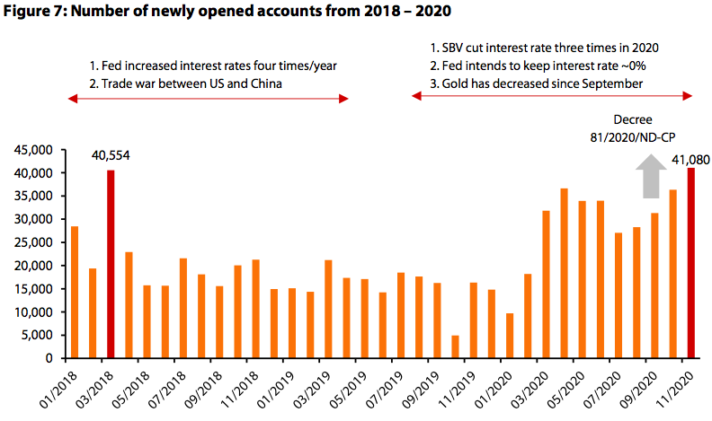In 2020, there had been strong capital flows from domestic investors, especially individuals. The number of newly opened accounts in November surpassed its previous peak in March 2018. Historically, this was not a good signal as the market dropped after that as the number of new accounts was at its highest.