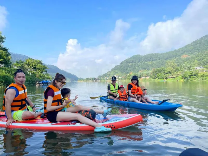 | Travelers kayaking on Dong Do Lake. Photo: Do Hoa |