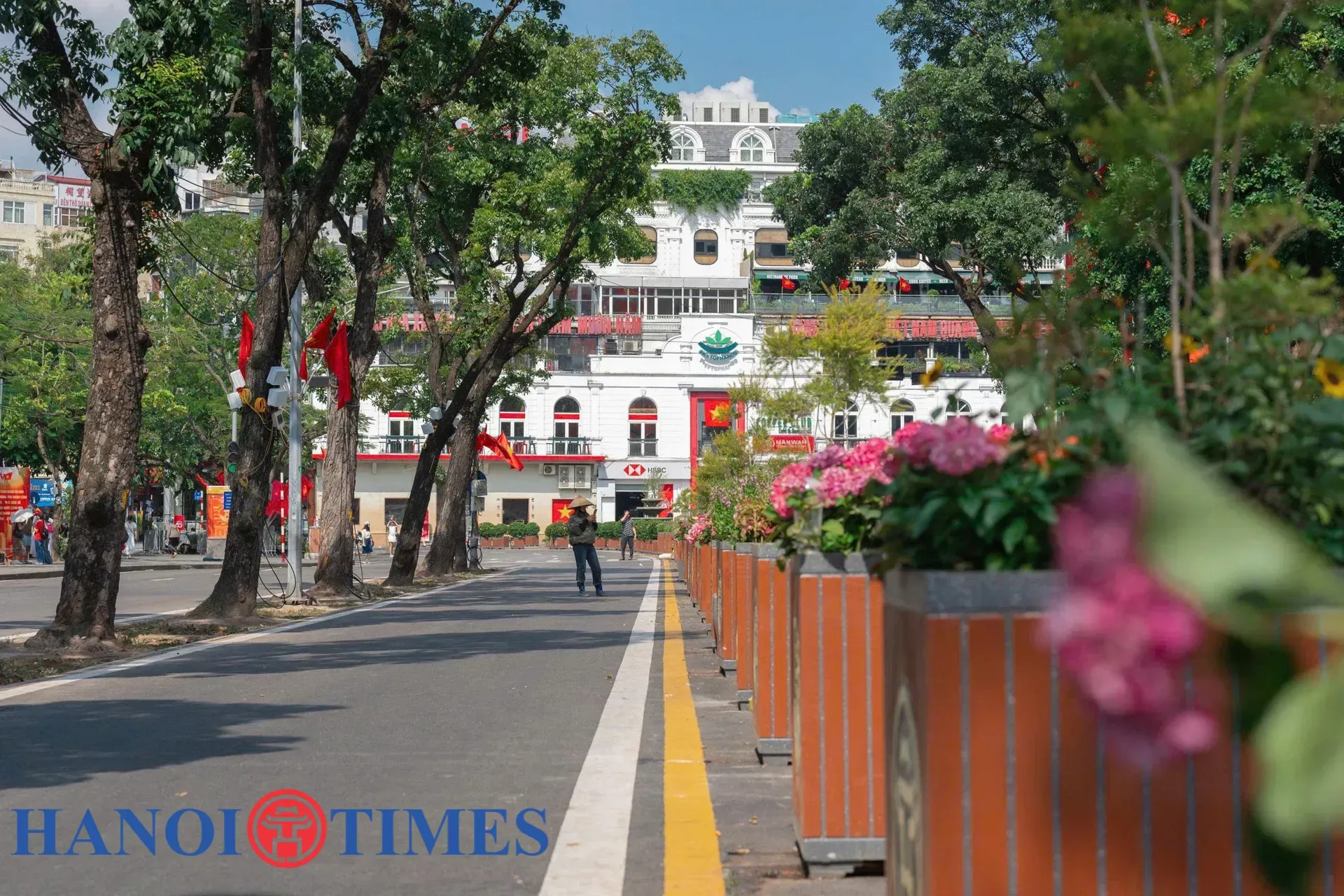 The square’s flooring has been repaved with a gentle slope toward Hoan Kiem Lake, ensuring effective drainage while maintaining a clean, seamless look.