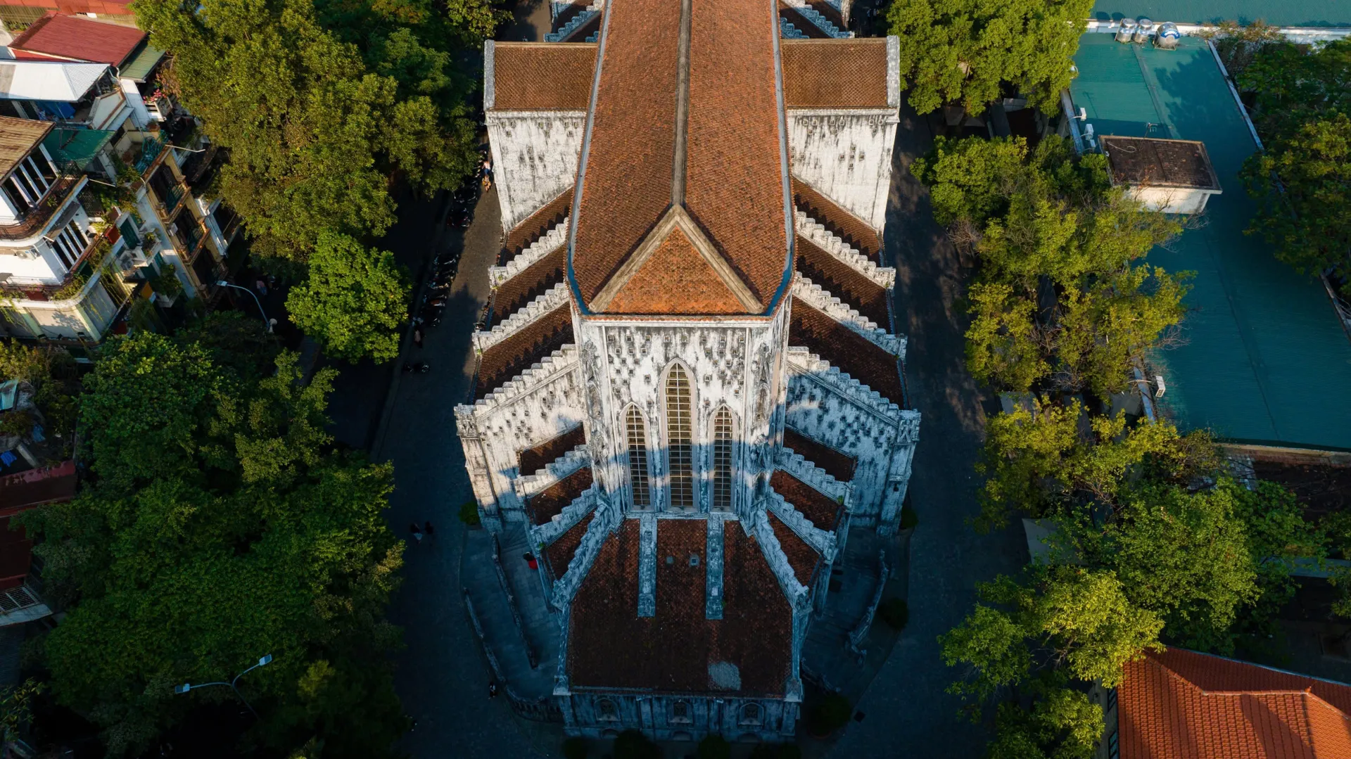 An aerial view highlights the architectural prominence of St. Joseph’s Cathedral in Hanoi. Photo: Ngoc Tu/ The Hanoi Times