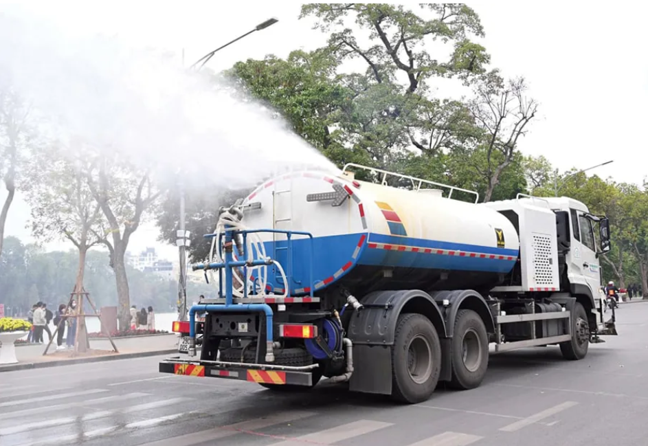 Hanoi Urban Environment One Member Limited Liability Company (Urenco) uses mist-spraying vehicles to reduce fine dust levels in the air. Photo: Urenco
