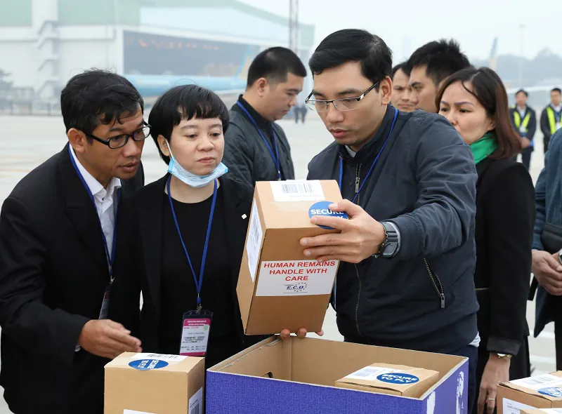 The bodies arrived at Noi Bai International Airport on Wednesday morning and handed over to local authorities.