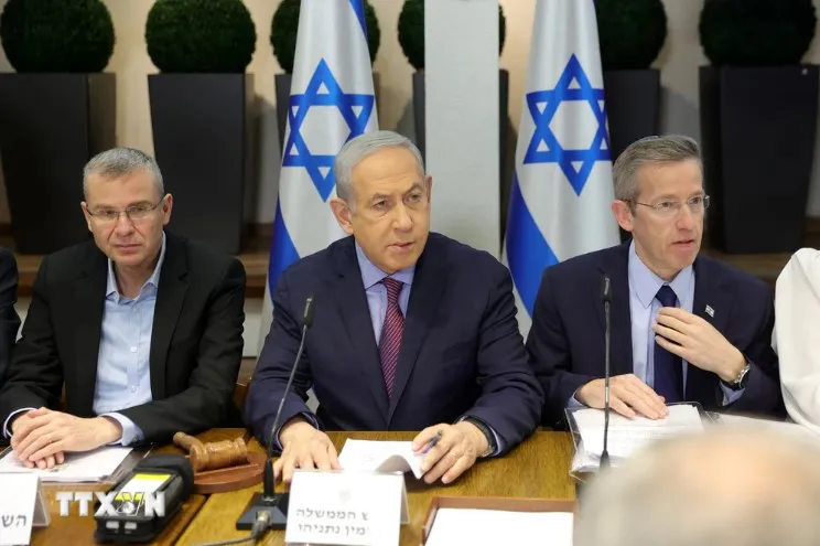 | Israel Prime Minister Benjamin Netanyahu (C) chairs a cabinet meeting in Tel Aviv on March 31, 2024. Photo: AFP/VNA |
