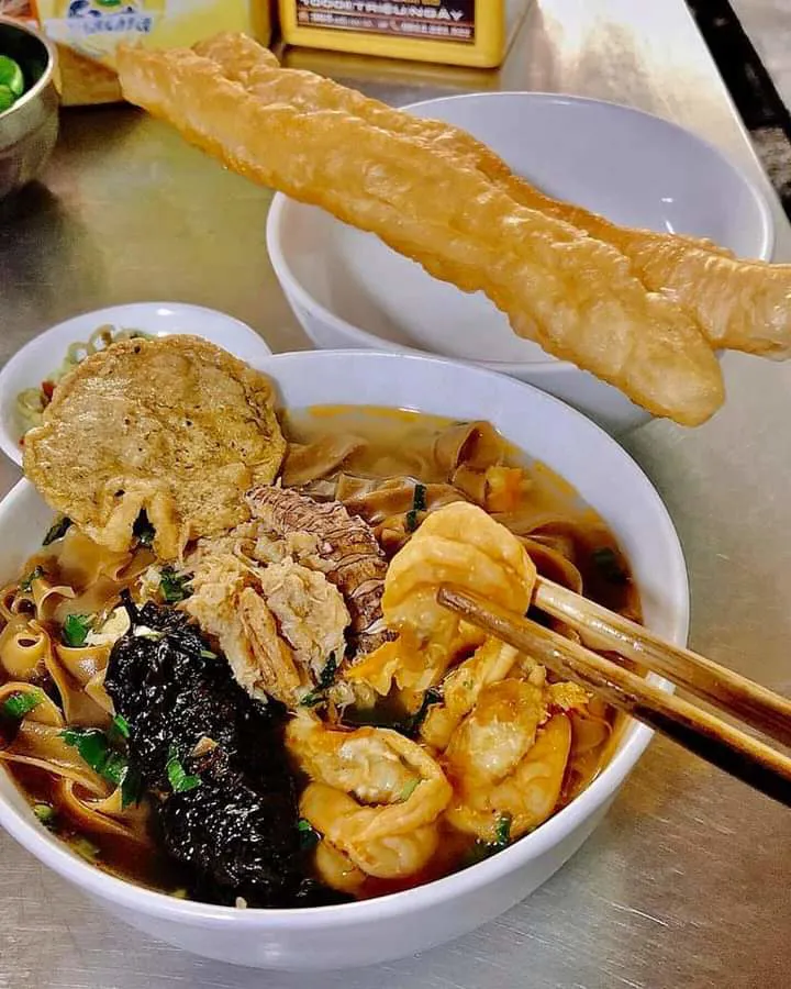 | The 'Banh da be be' (Dried noodle soup with mantis shrimp) is a Hai Phong's speciaty but very popular in Hanoi. |