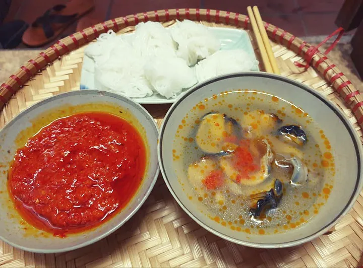 Afternoon time is suitable for banh gio (Vietnamese pyramid pork dumpling), rice porridge with chicken, sweet dessert and others. There were also seasonal dishes like green flake rice of Vong village only in autumn.