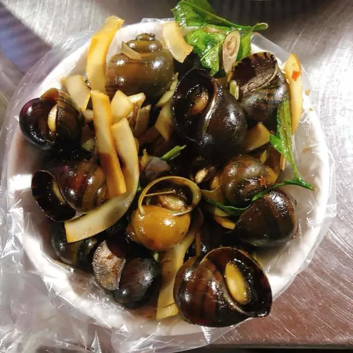 | The 'Oc xao dua' (stir-fried snails with coconut) is another delicious adopted Hanoi's street food. |
