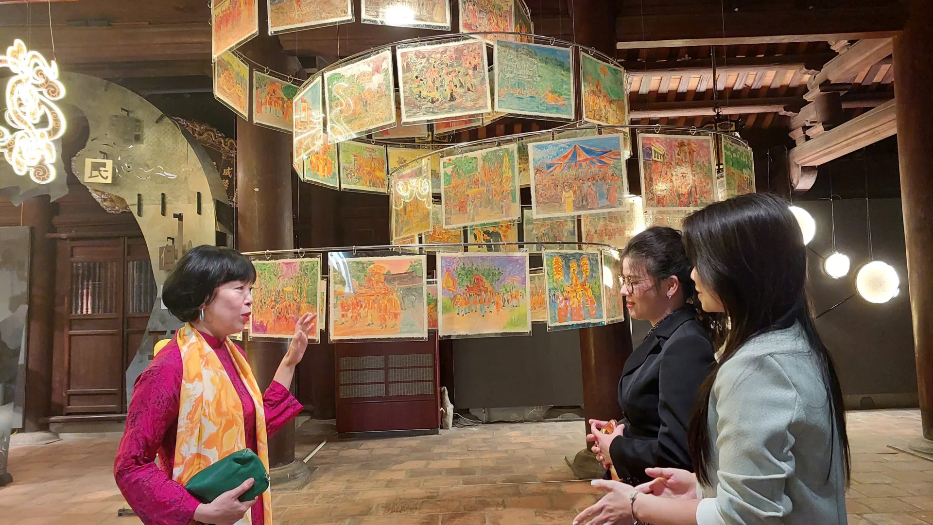 Under the festival theme, Imperial Capital Festival by artist Le Thi Thanh recreates the atmosphere of Hanoi’s celebrations through seven representative festivals.