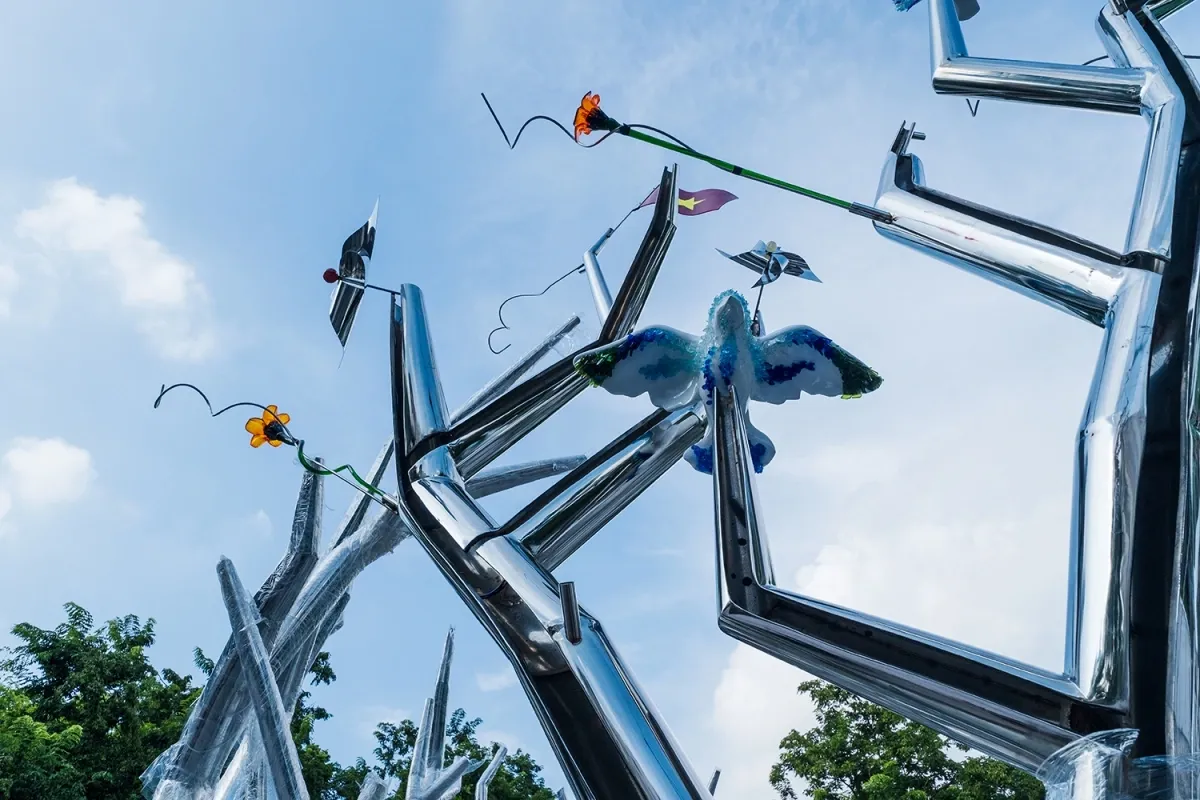 Following the success of her earlier piece, Hoi sinh or Revival installed in Co Tan Park across from the same site, Tia-Thuy Nguyen and her team refined their unique metal-sculpting technique for large-scale “tree artworks”.