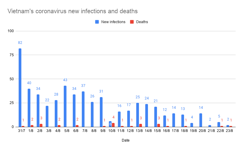 Vietnam kept death-zero profile until late July when SARS-CoV-2 locally resurfaced.