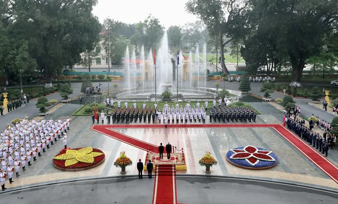 | The welcome ceremony takes place at the Presidential Palace in Hanoi on April 4. Photos: VNA |