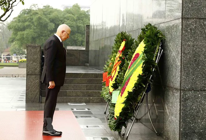| Australian Governor-General David Hurley lays a wreath at the Ho Chi Minh's Mausoleum at Ba Dinh Square, Hanoi, on April 4. |