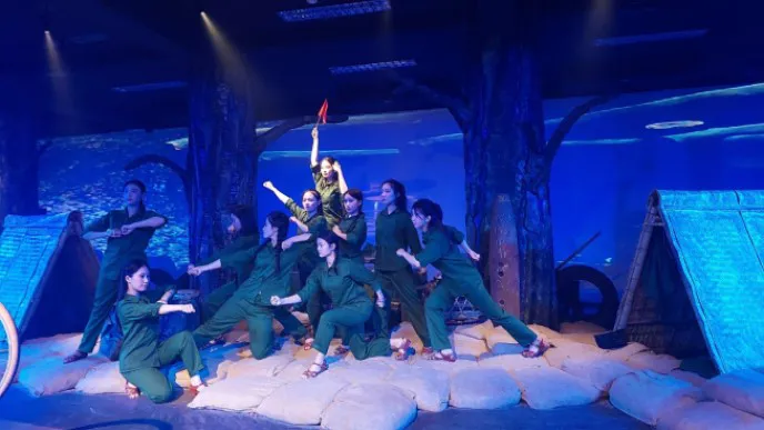 It is also a play that has tried many new experiments in staging, close to the development trend of world theater, where the audience can interact and be embedded in the war space re-enacted on stage.