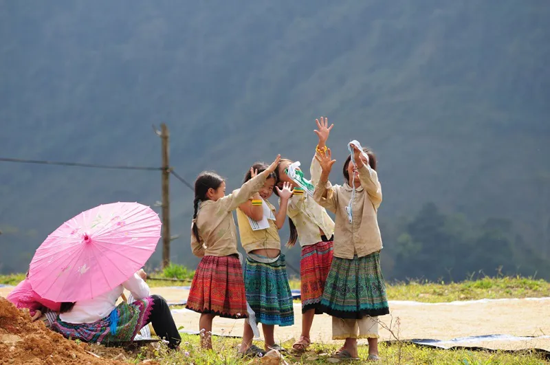 | The little ethnic girls in Moc Chau Plateau in Son La, northwest province of Vietnam. Photo: Lam Linh |