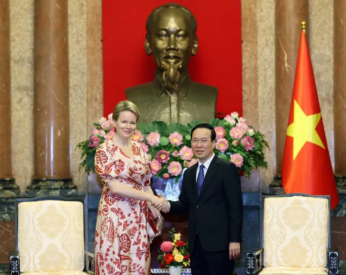 | Queen Mathilde of Belgium (left) meets Vietnam's President Vo Van Thuong on May 9 during her three-day visit to the country. Photo: Vietnam News Agency |