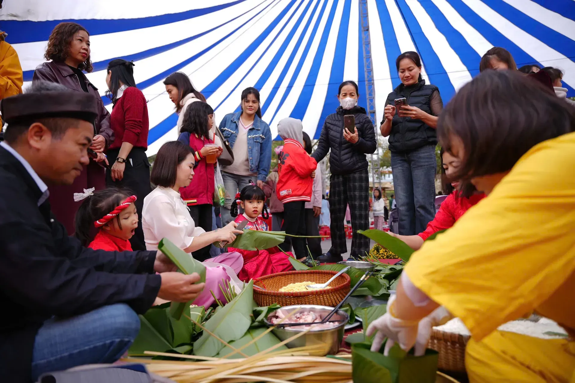Beyond exhibitions, the festival emphasizes participation. Visitors can join hands-on Tet activities such as wrapping and boiling banh chung and banh gai, making traditional jams and learning about folk gift-giving customs.