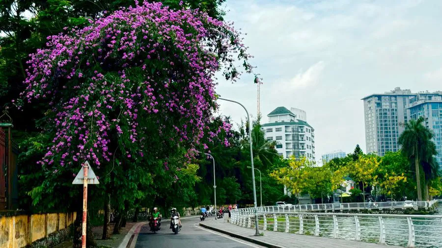The Lagerstroemia tree is often planted along roadsides to cool the heat in the crowded streets of Hanoi.