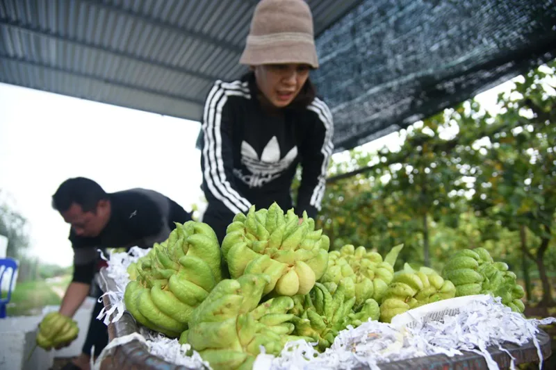 A month before the Lunar New Year, or the traditional Vietnamese Tet Holiday, gardeners in Dac So Commune, Hoai Duc District, are busy harvesting Buddha's hand citron, a special fruit for ancestor worship on Tet.