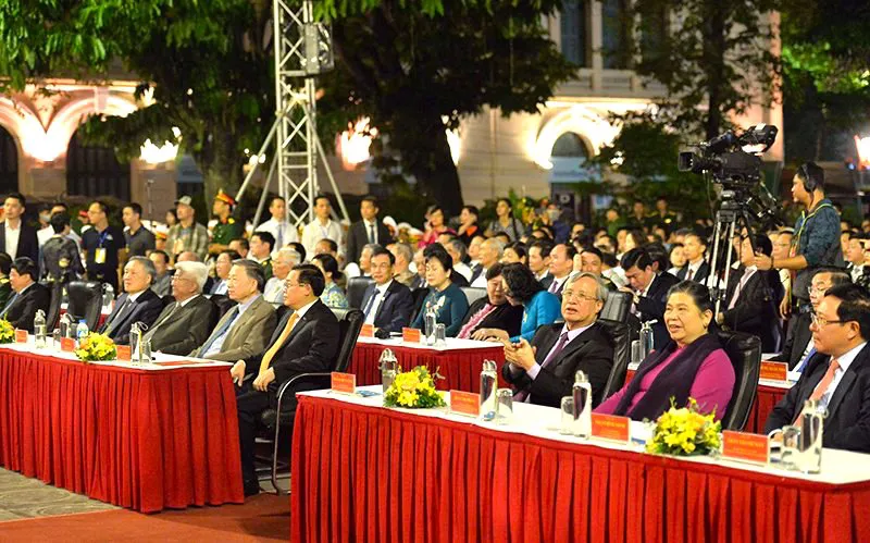 | Party and state leaders, international guests, and Hanoi leaders attend the ceremony. |
