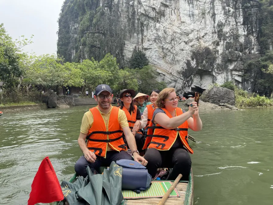 | French visitors enjoy Trang An Landscape. Photo: Bich Hoi/The Hanoi Times |