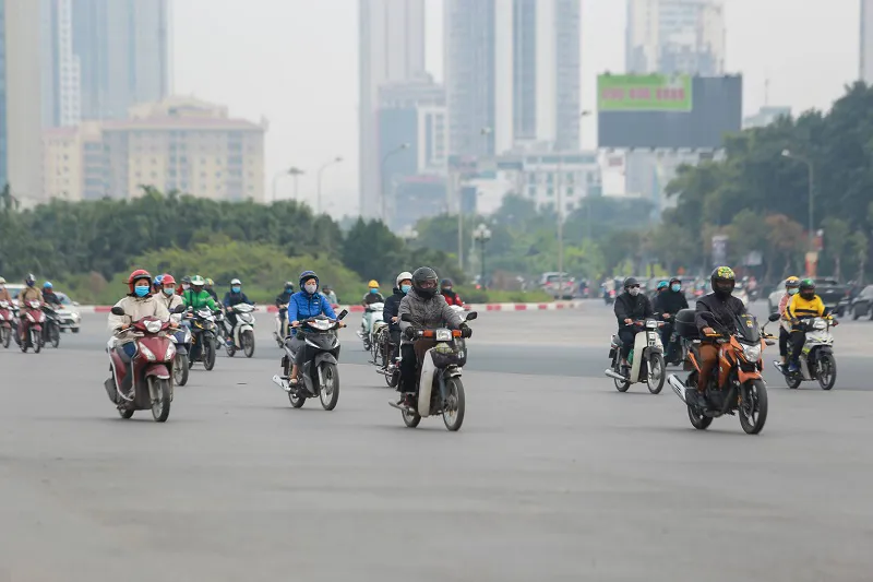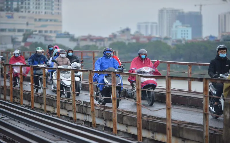 Vehicles moved slowly across Long Bien bridge on December 15 morning. |
