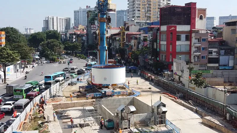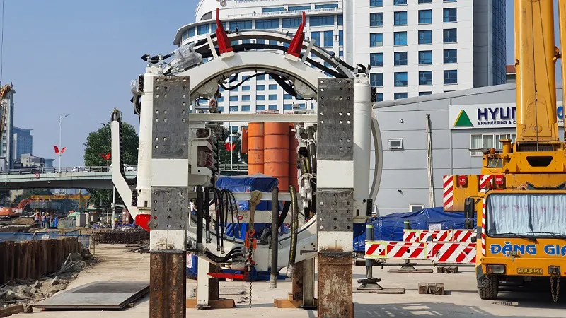After arriving in Hai Phong port on October 31 and moved to underground station S9, the first of the four underground stations on the Nhon - Hanoi Railway Station route along Kim Ma street in Ba Dinh district, the components of machine have been brought to the construction site.