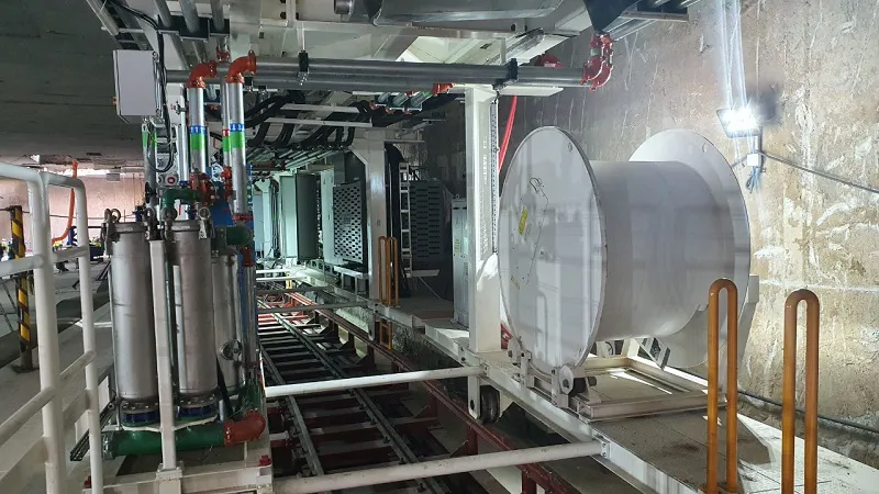 The machine was manufactured by German firm Herrenkecht. It has tube shape with a boring shield at front and is 6.6m wide. |