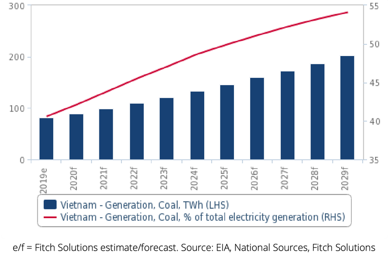 Vietnam's power expansion is predicted to continue being largely driven by coal despite increasing pressures on the fuel source of late, Fitch Solution has said in a report.