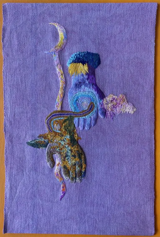 Georgina May Young’s hand-embroidered textile series evokes a slow and meticulous practice, contemplating the potent potential and ancient knowledge held in the earth.