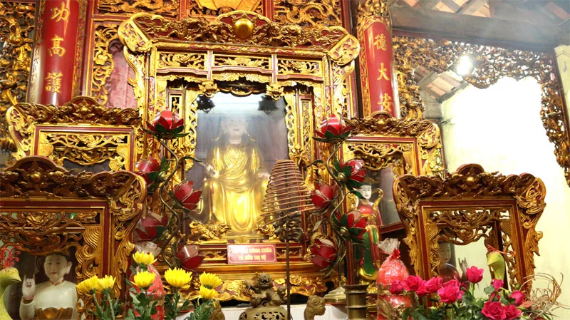 Dam ancient temple dates back a hundred years, with authentic Vietnamese ancient architecture. This spacious temple consists of old wooden columns and brown tiled roofs and a large courtyard. The temple’s gate is the archway in the front, overlooking over the Red river. There are three arches, the most spacious arch is in the middle and two smaller ones are on the two sides.