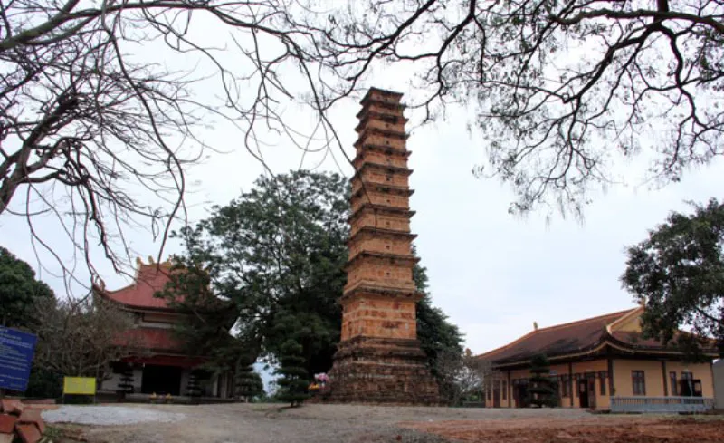 Binh Son Tower or the tower at Vinh Khanh Pagoda, also known as Then Tower, was originally built with 13 storeys under Tran reign (1225-1400). Now only 11 storeys remain. Made of baked clay, the tower is a typical architecture of the Ly - Tran reigns and also the tallest of its kind remaining today. It was listed in March 2016 as among the last national relic sites left from the Ly - Tran period (1009 - 1400).