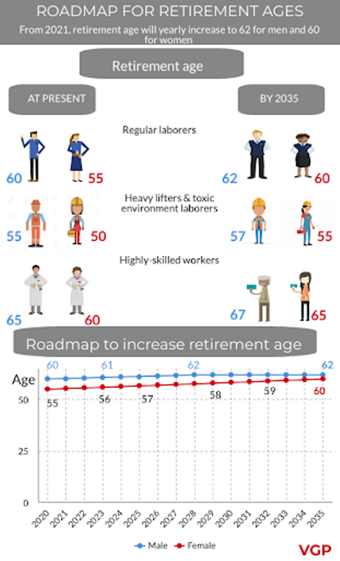 | Roadmap for retirement ages. Infographics news.chinhphu.vn |