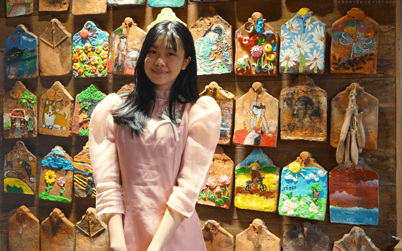 Khanh Linh (a high school student in Hanoi) was excited to experience the creative space of the ancient village: "The space in the ancient village is very cozy. The paintings left by visitors are displayed beautifully and in different styles."