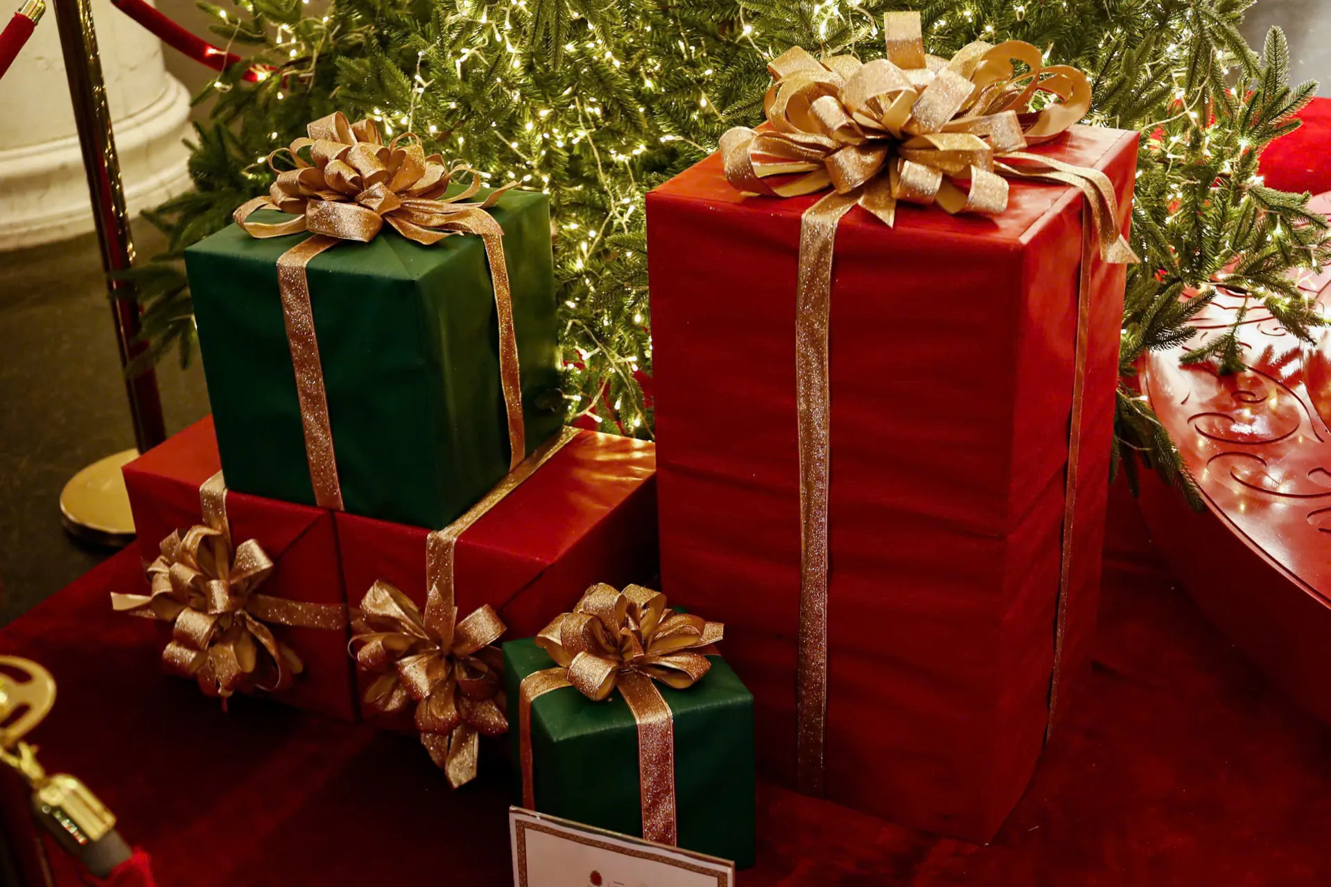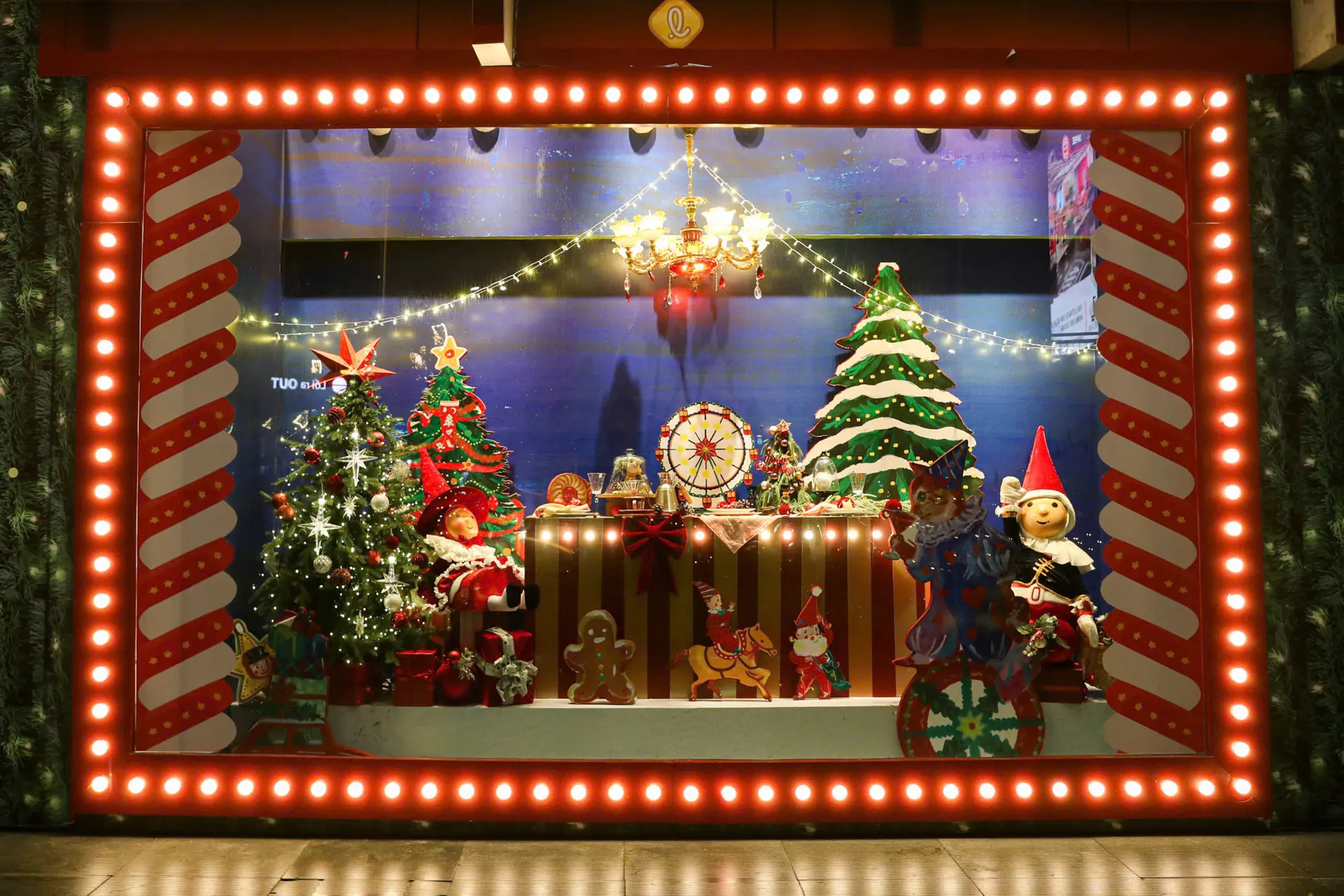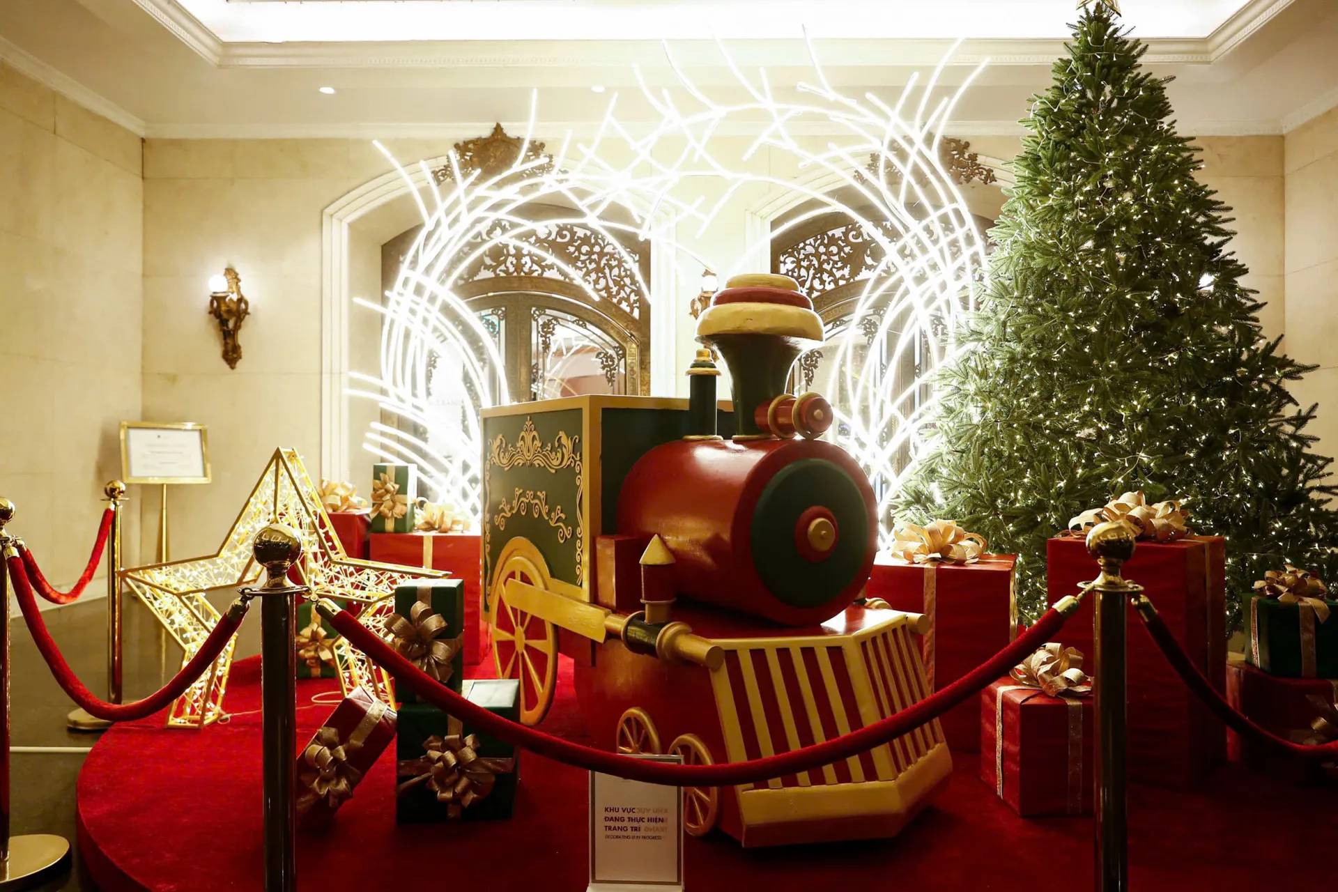 Oversized gift boxes, snow globes and sparkling LED lights illuminate the surrounding Trang Tien street, creating a refined and nostalgic atmosphere.