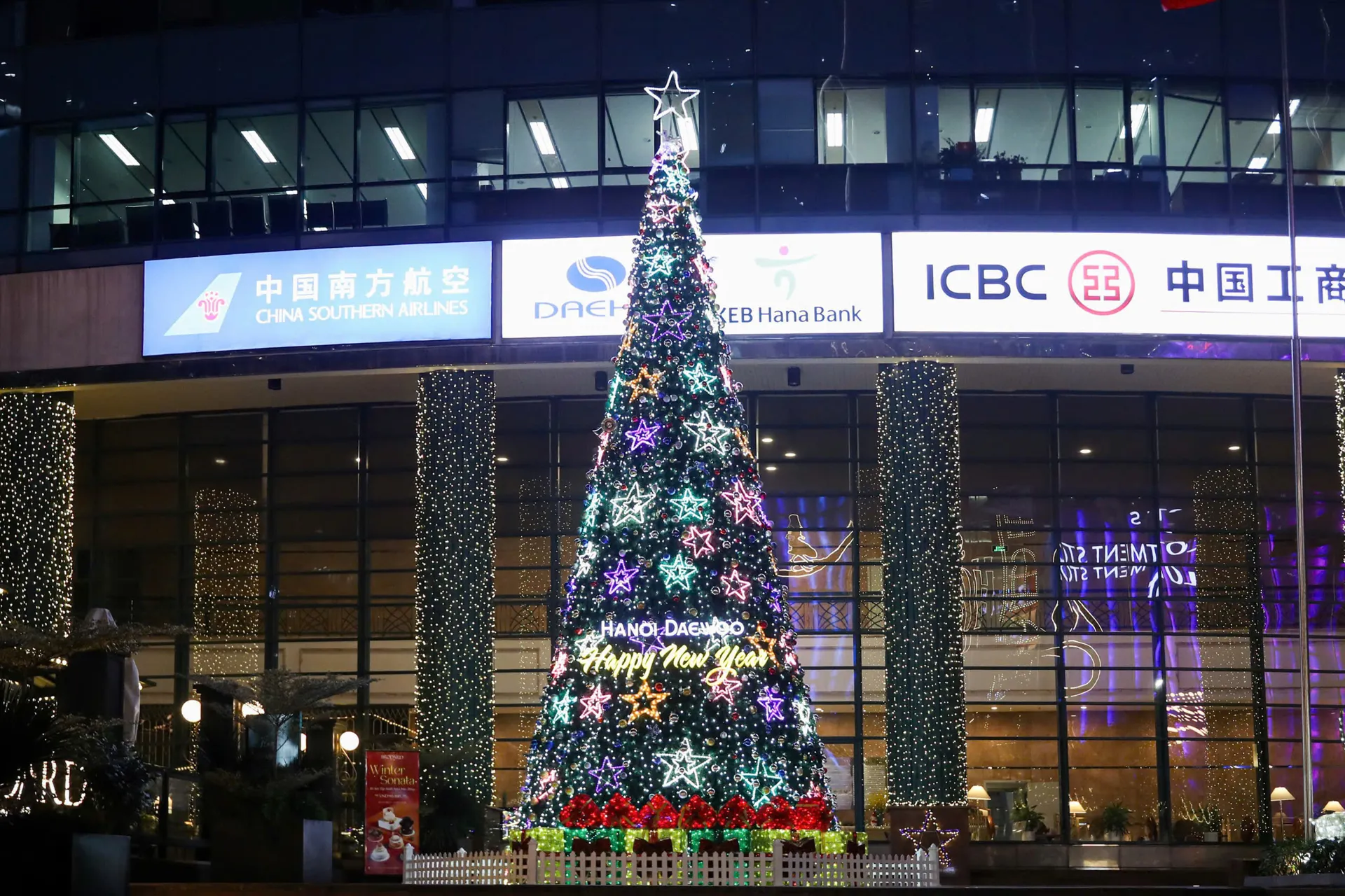 Just across Lieu Giai Street, a beautifully decorated Christmas tree welcomes guests in front of the Lotte Center, adding to the festive charm of the area.