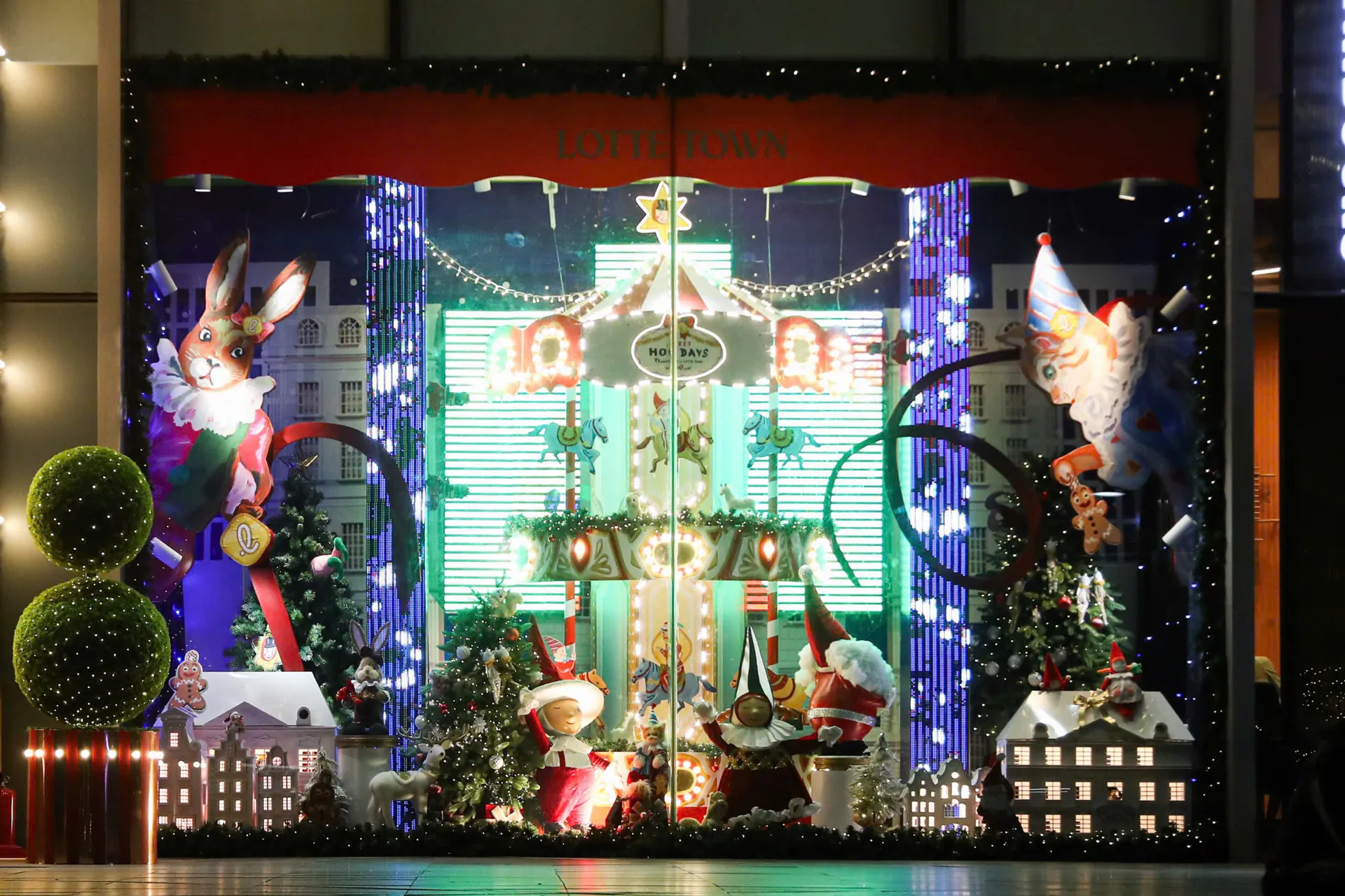 Standing tall against the night sky, the giant Christmas tree at Lotte Center Hanoi is a striking highlight, as it bathed in constantly shifting LED lights, casting a warm glow over the surrounding streets. Inside the mall, entrances and walkways are equally adorned, creating a seamless festive experience that draws in crowds of shoppers and visitors.