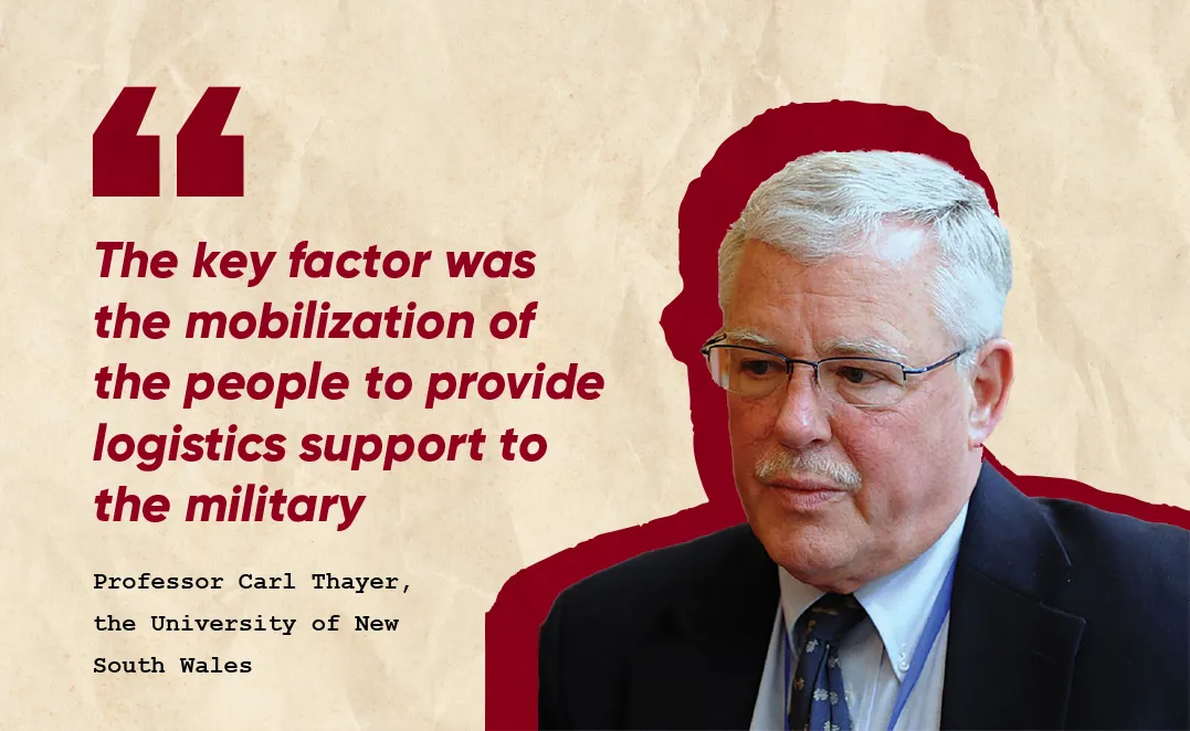 The key factor was the mobilization of the people to provide logistics support to the military, as stated by Professor Carl Thayer from the University of New South Wales.