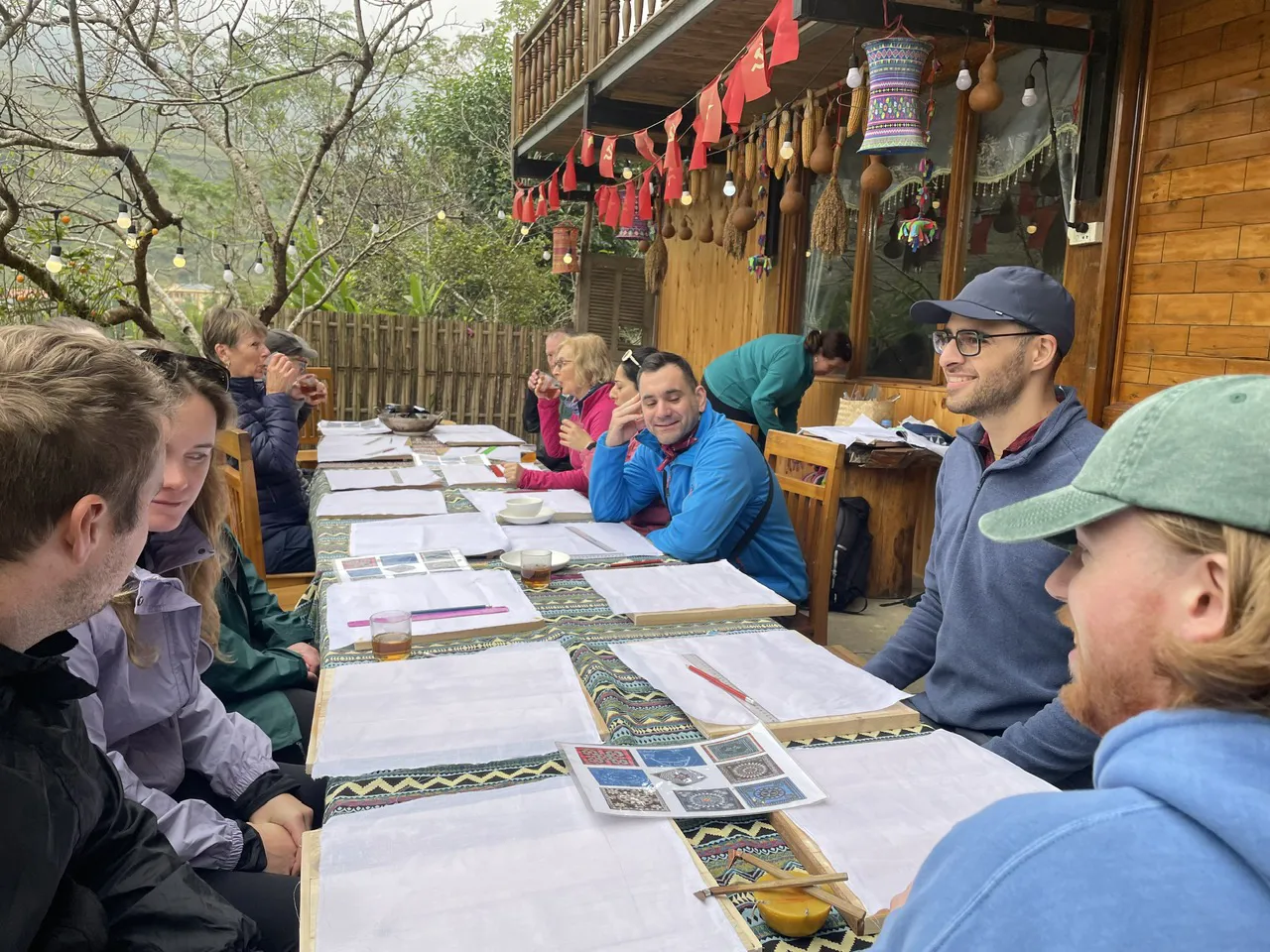 Guests are invited inside to experience local culture, watching brocade weaving, learning how beeswax patterns are drawn on fabric, cooking five colored sticky rice and tasting products of the mountains.