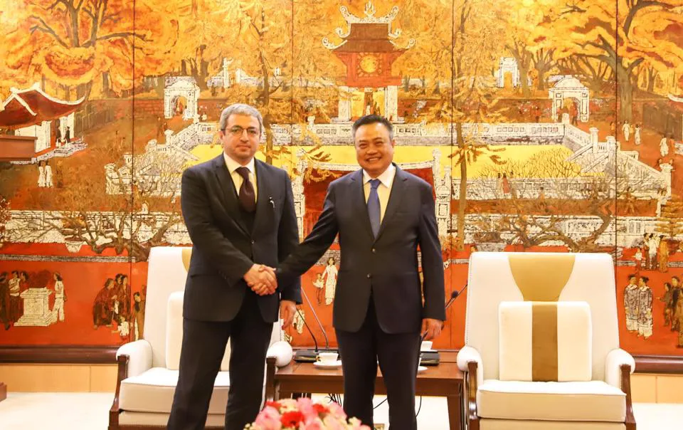 | Tran Sy Thanh, Chairman of the Hanoi People's Committee (right) welcomes new Azerbaijani ambassador Shovgi Kamal Oglu Mehdizade on February 8. Photo: The Hanoi Times |