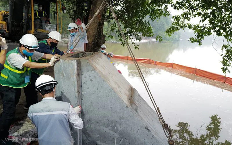 The concrete revetments used on the embankment are made of new material which can resist corrosive agents. Trinh Hoang Tung, the representative of the Hoan Kiem district construction investment project management board, said the embankment could last from 50 to 70 years.